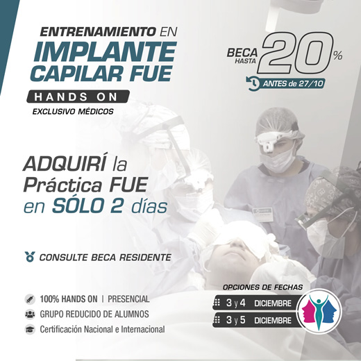 Sede:    SAENI Buenos Aires: Av. Rivadavia 4447, piso 1, CABA. Día extra de práctica en técnica FUE. Modalidad: Presencial, 100% hands on, grupo reducido de alumnos. Dirigido a: exclusivo médicos. Certificación: nacional e internacional. Opciones de fechas: 3 y 4/12 o 3 y 5/12. Becas: 20% hasta el 27/10/25. Más info
